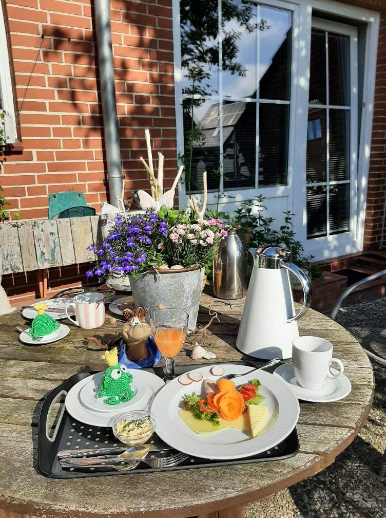 ich danke Dir für die schöne Woche in dem hübschen Einzelzimmer, in dem ich immer gut geschlafen habe. Dein Frühstück ist der Hit und jeden Morgen hast Du dir eine nette Kleinigkeit als essbare Deko ausgedacht. Einfach herrlich. Es tat gut mit Dir zu schnacken. Wenn auch der Zufall mich zu Dir brachte, war dies mit Sicherheit ein Glücksfall. Hoffentlich ist „mein“ Zimmer frei, wenn ich Urlaub habe.